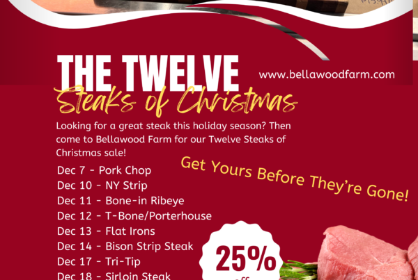For 12 days between Dec 7 and Dec 24, Bellawood Farm will be discounting one kind of steak per day 25%! This means huge savings for you heading into the…